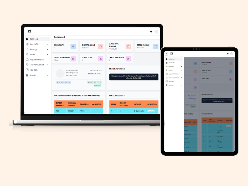 PV/BV Management System ensures automated calculation of points and commissions, providing accurate tracking, seamless processing, and transparent earnings distribution for better business performance and growth.